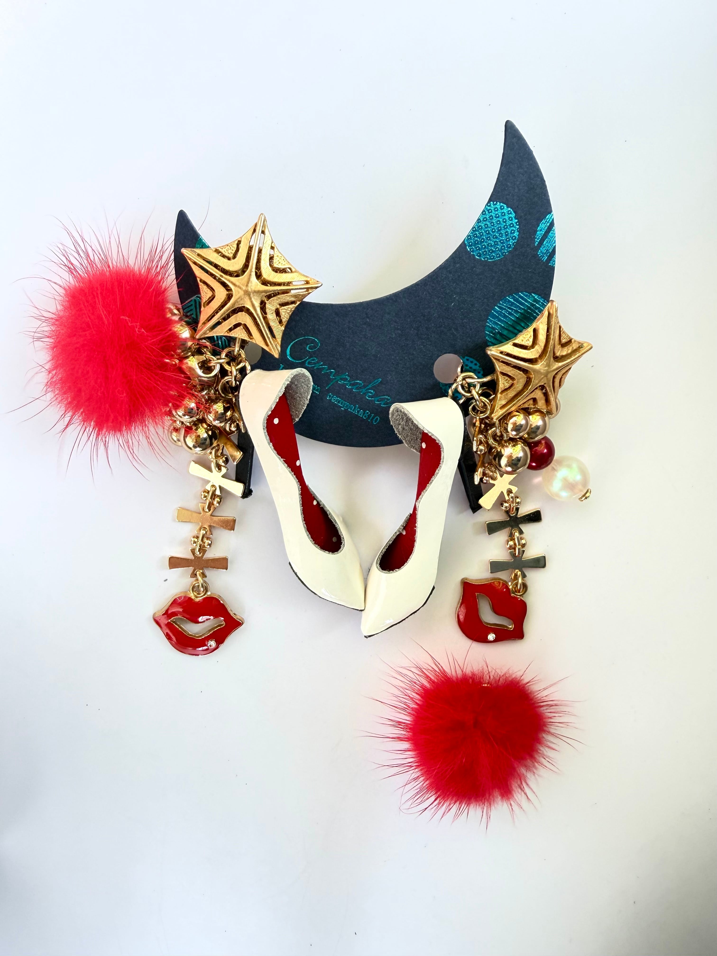 サイドには唇のチャームが付いていて、ミンクは季節によってお取り外しが可能です。