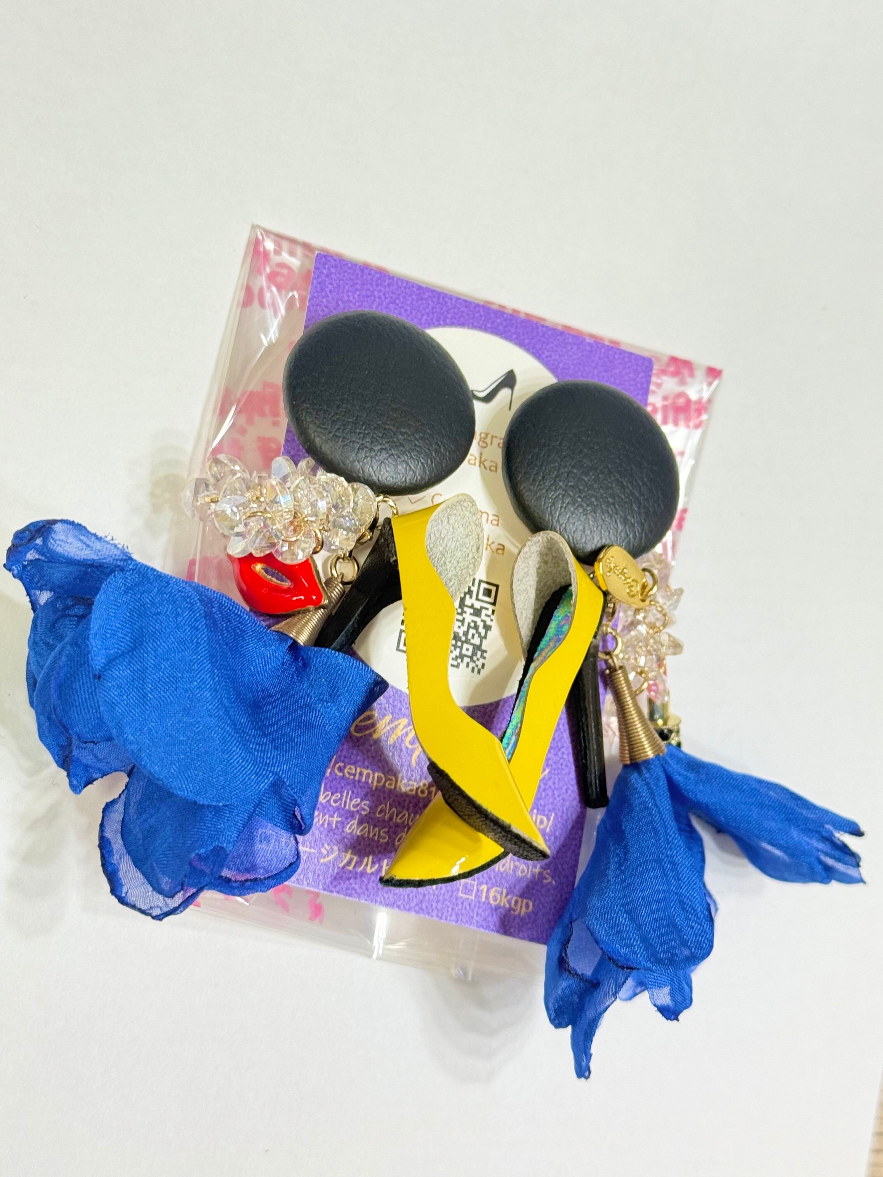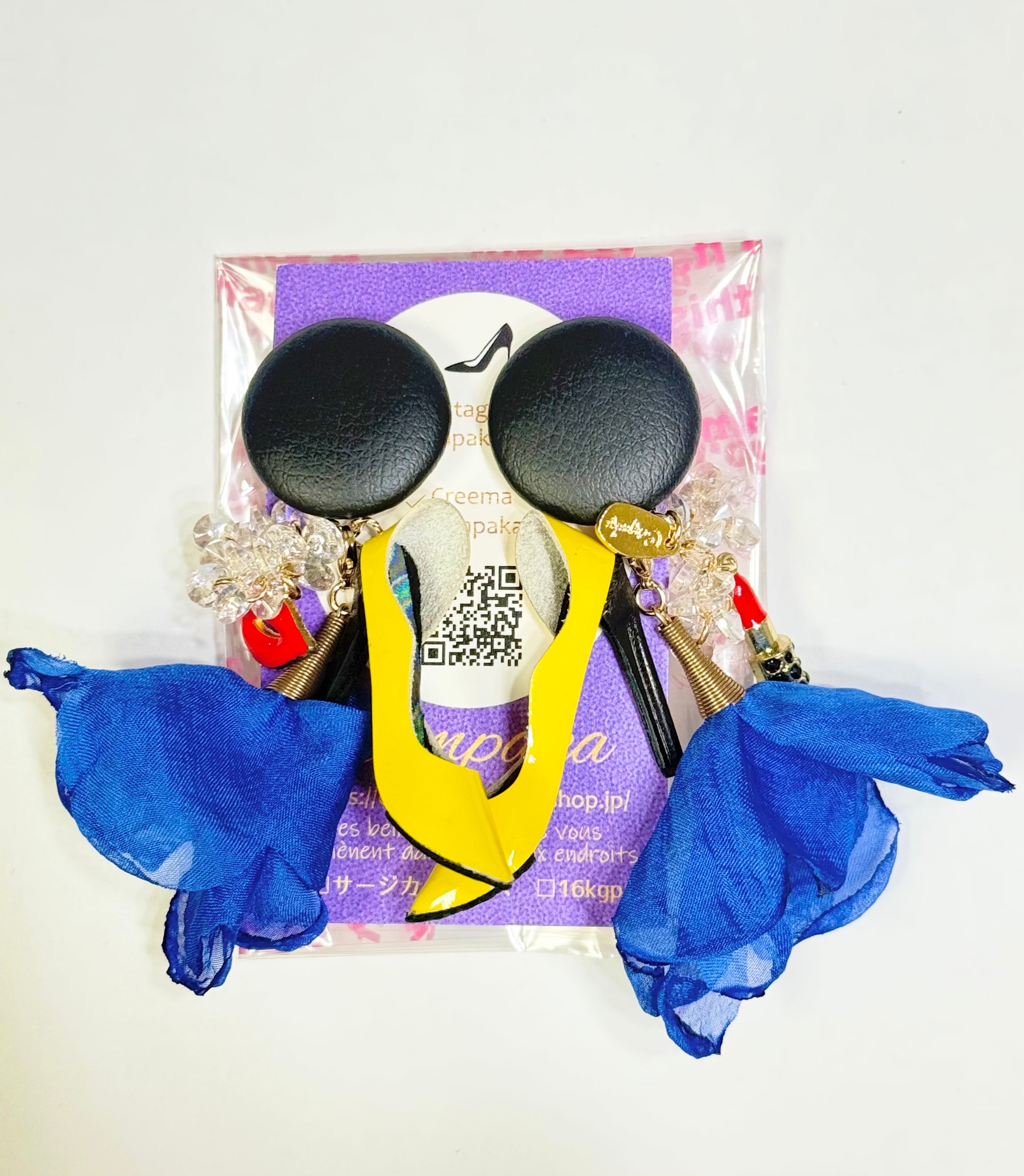 サイドには口紅と唇のチャームが付いていて、ブルーのタッセルがとても華やかです✨