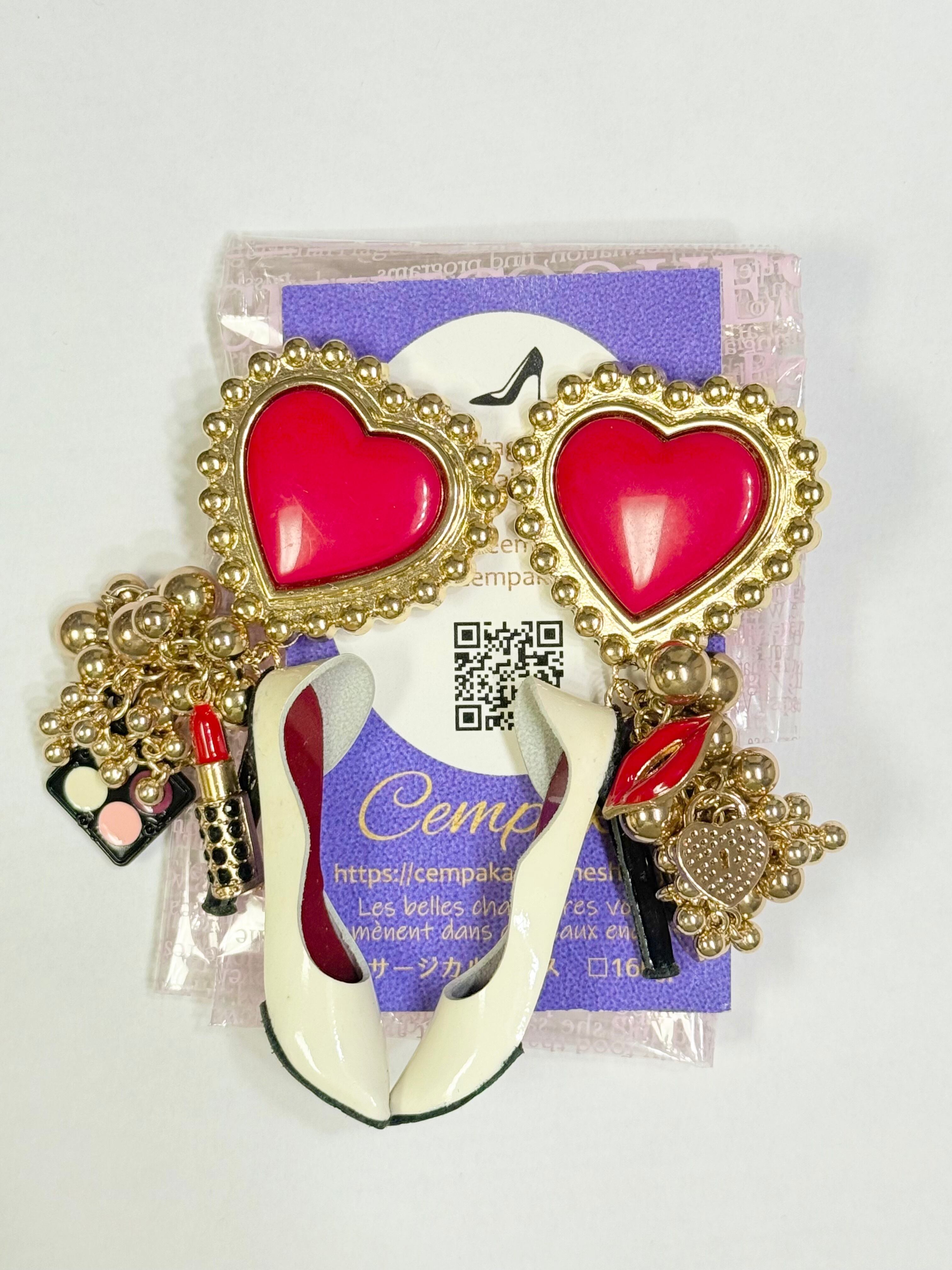カナダのハートのヴィンテージボタンにエナメルの白×エナメルレッドのハイヒールを合わせました。