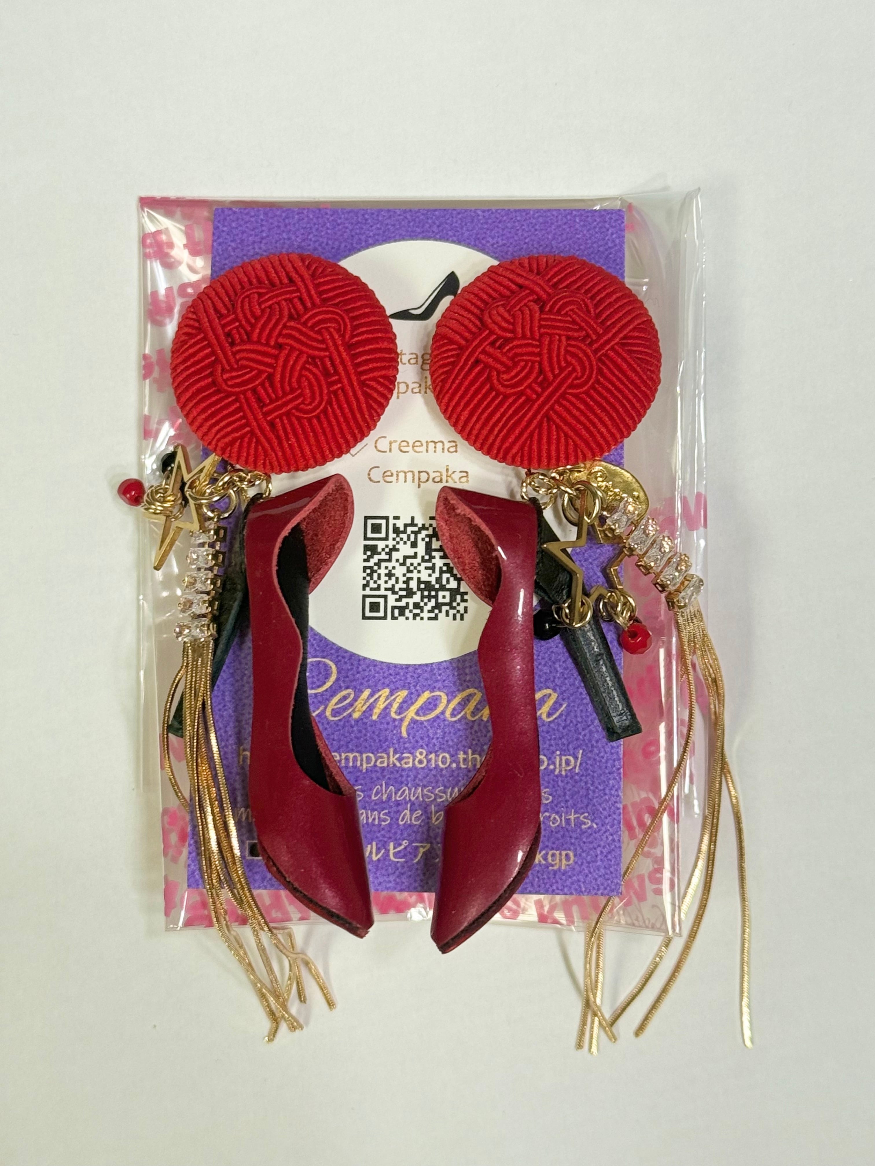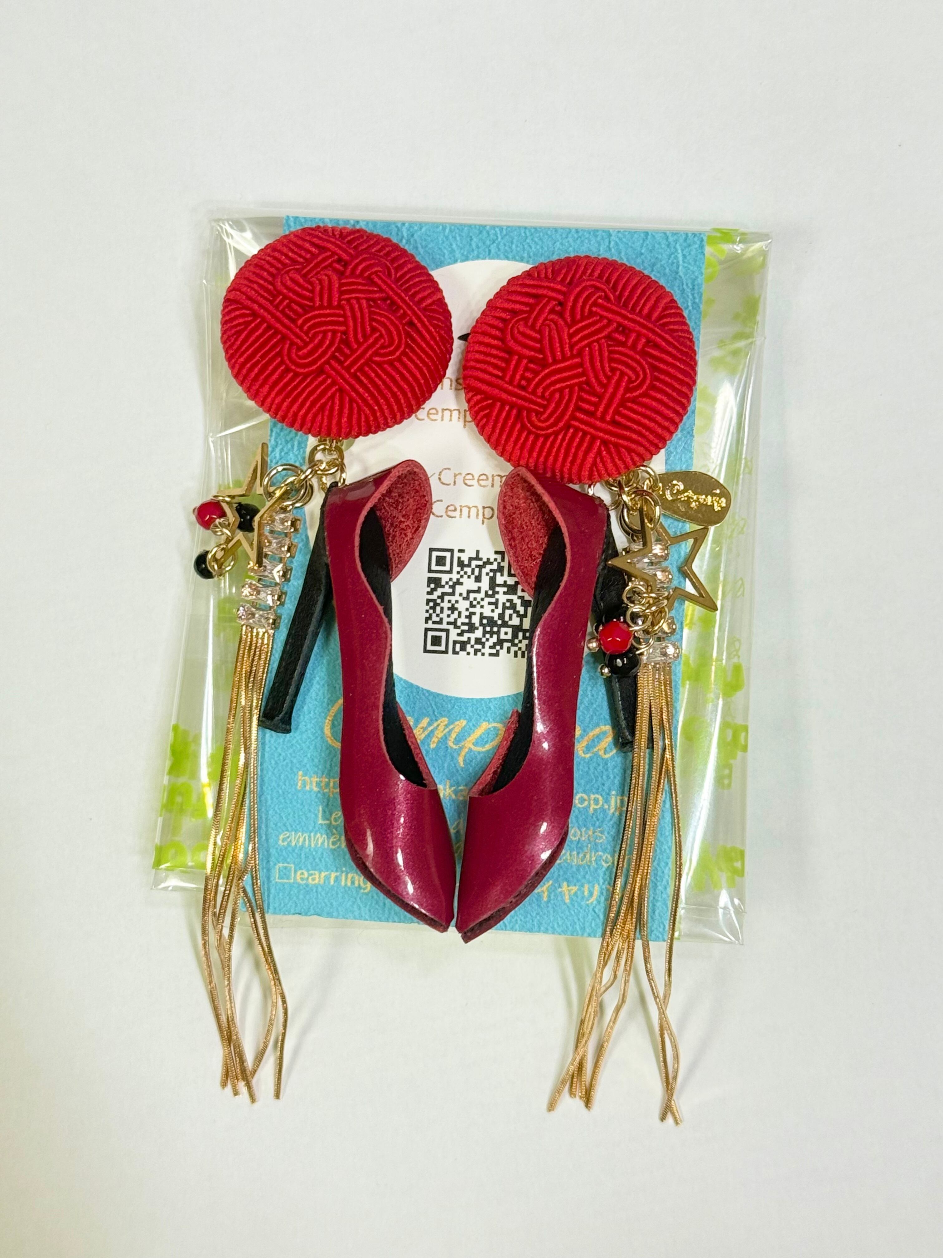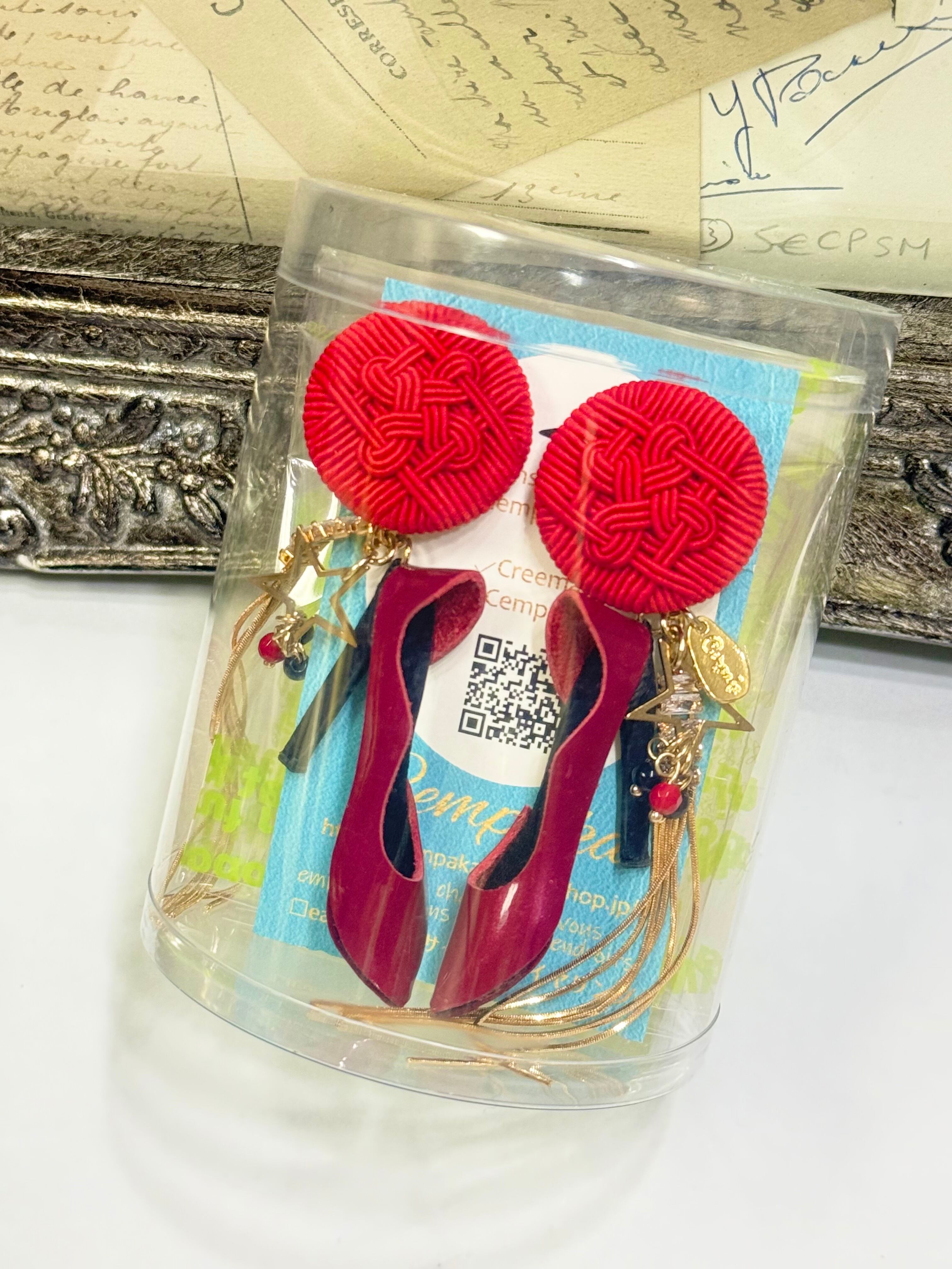 水引きのヴィンテージボタンに赤のエナメル✖️中敷が黒のハイヒールを合わせました✨