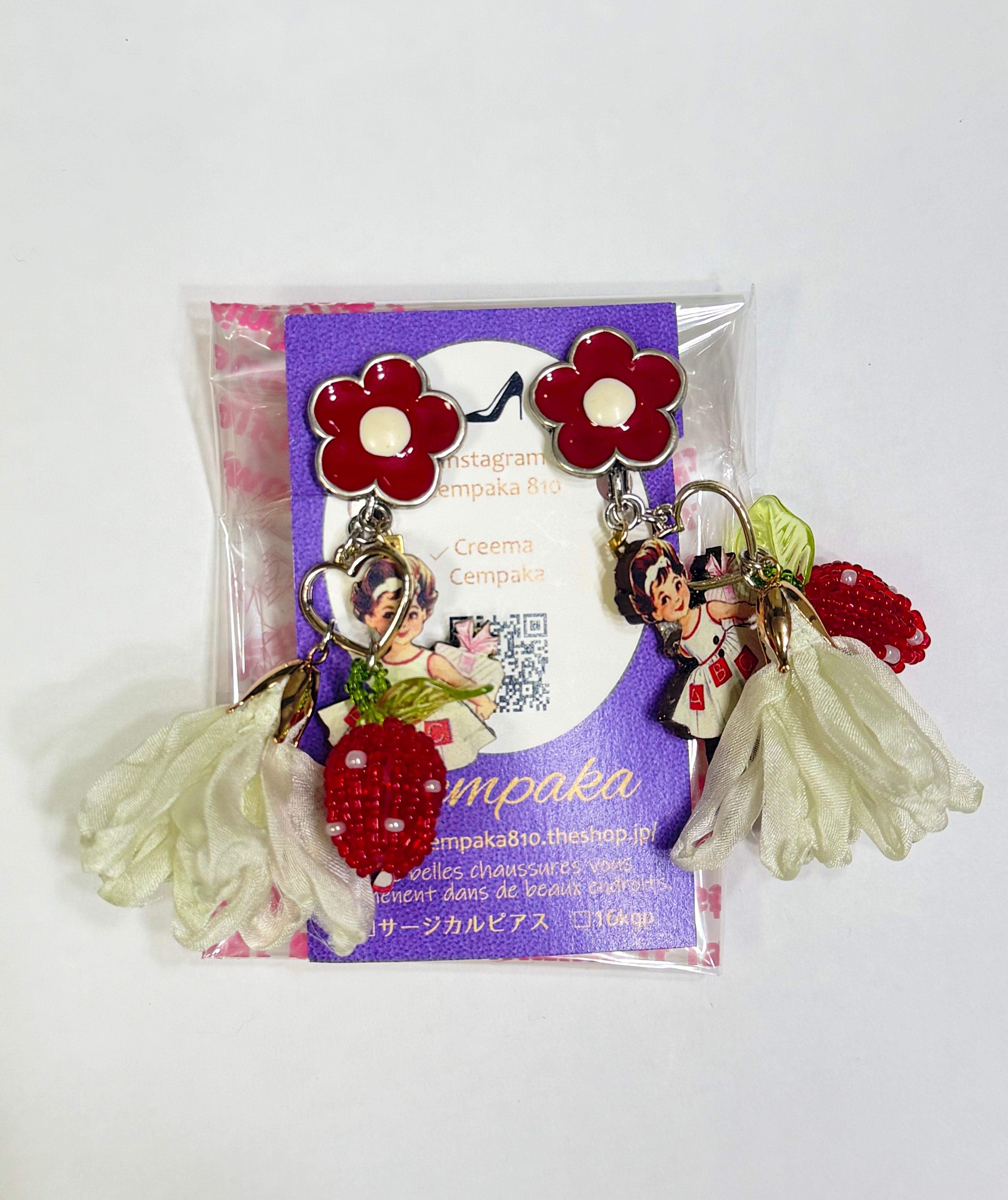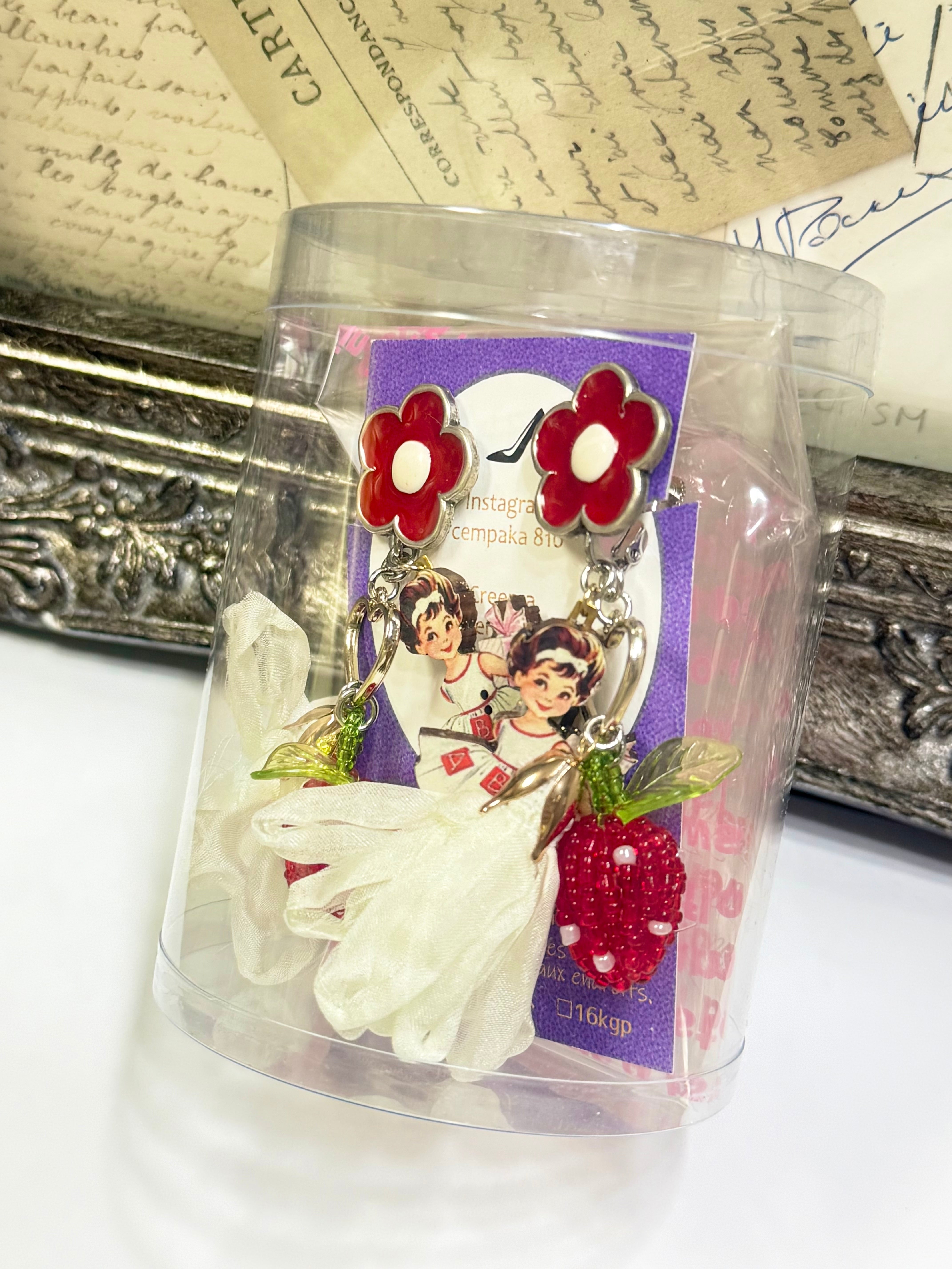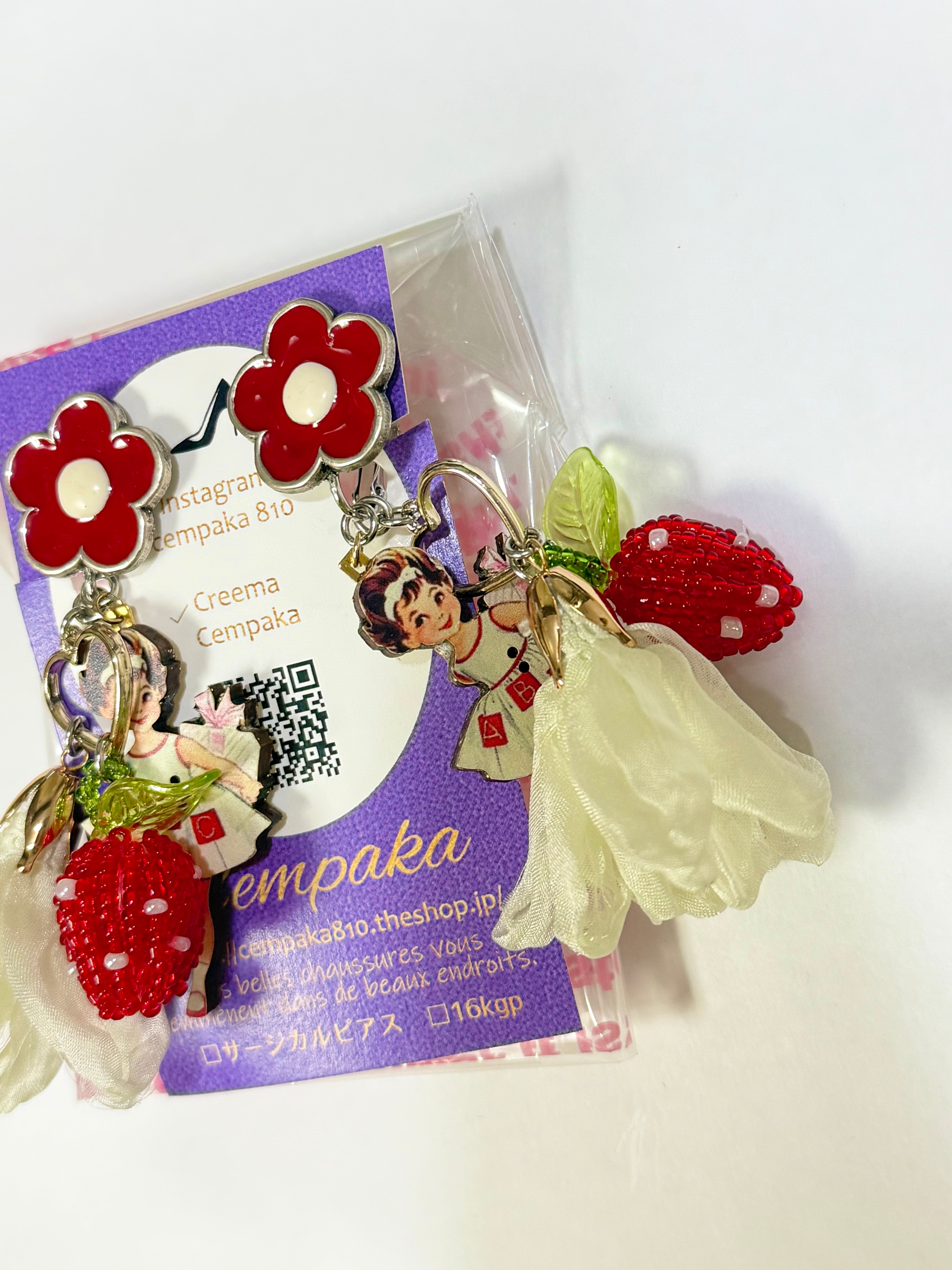 サイドにはビーズのイチゴチャームが付いて、とてもキュートです❤️
