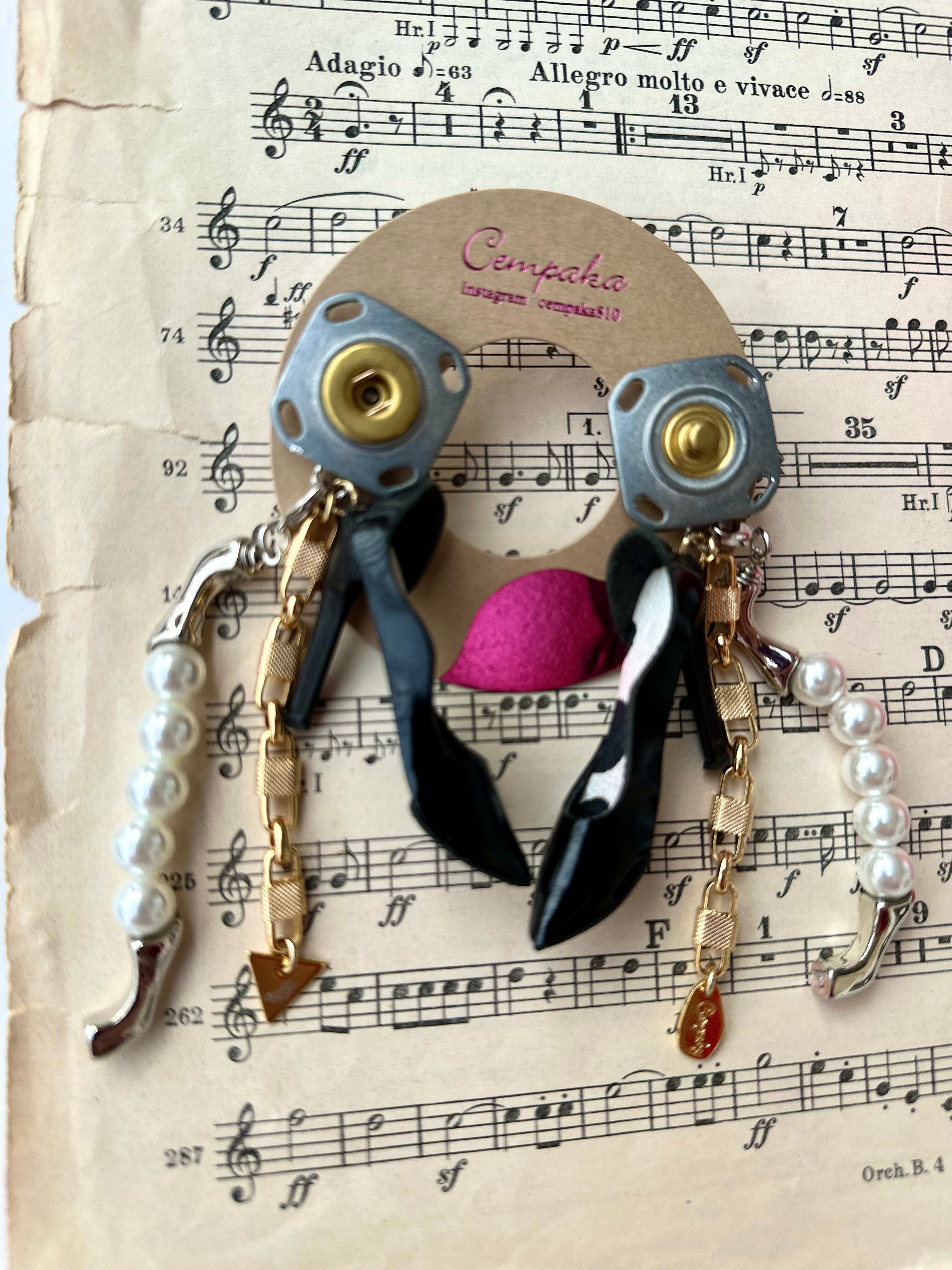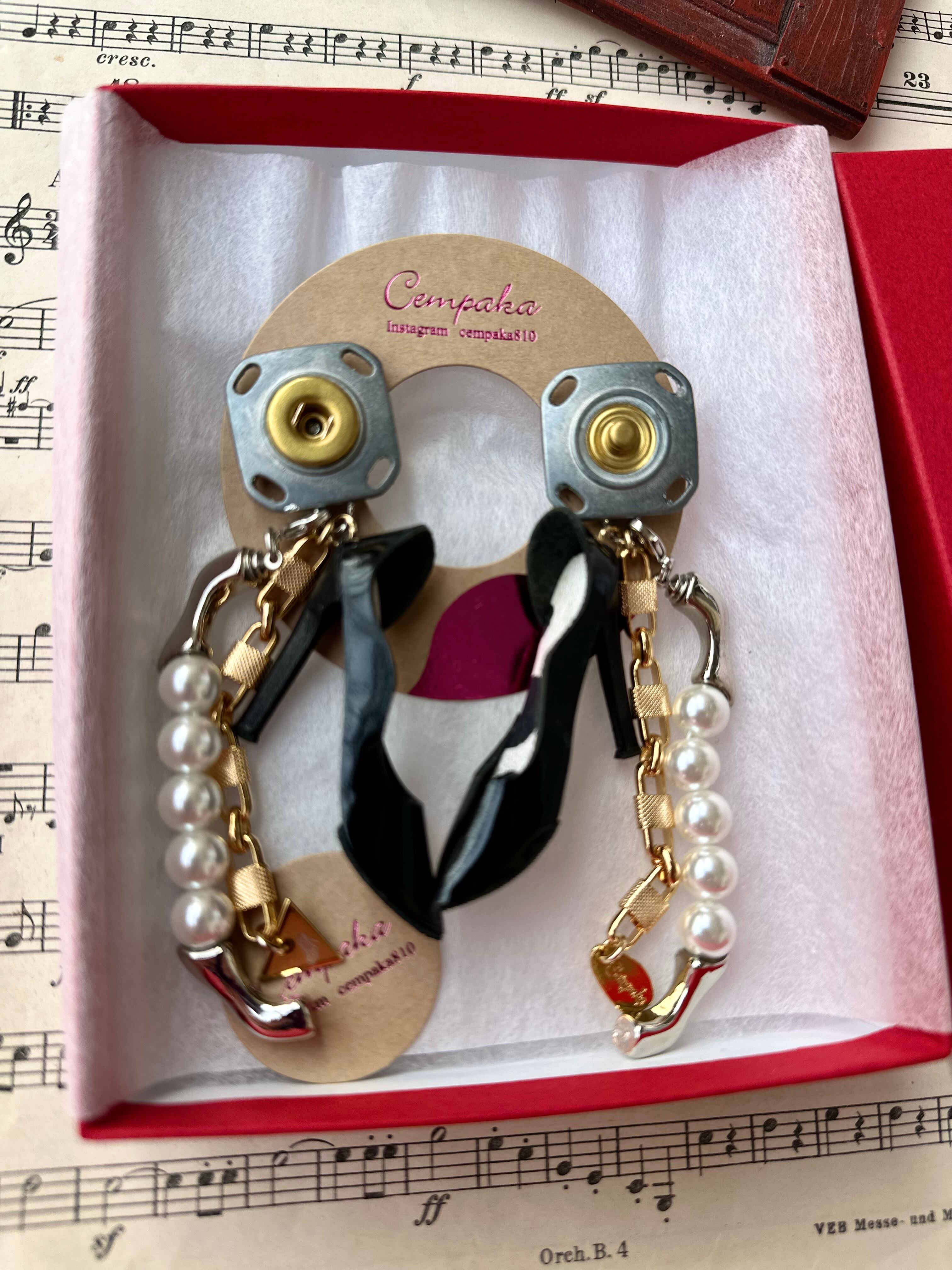 ドイツヴィンテージのスナップボタンに黒エナメル×中敷ダルメシアンハイヒールを合わせました✨