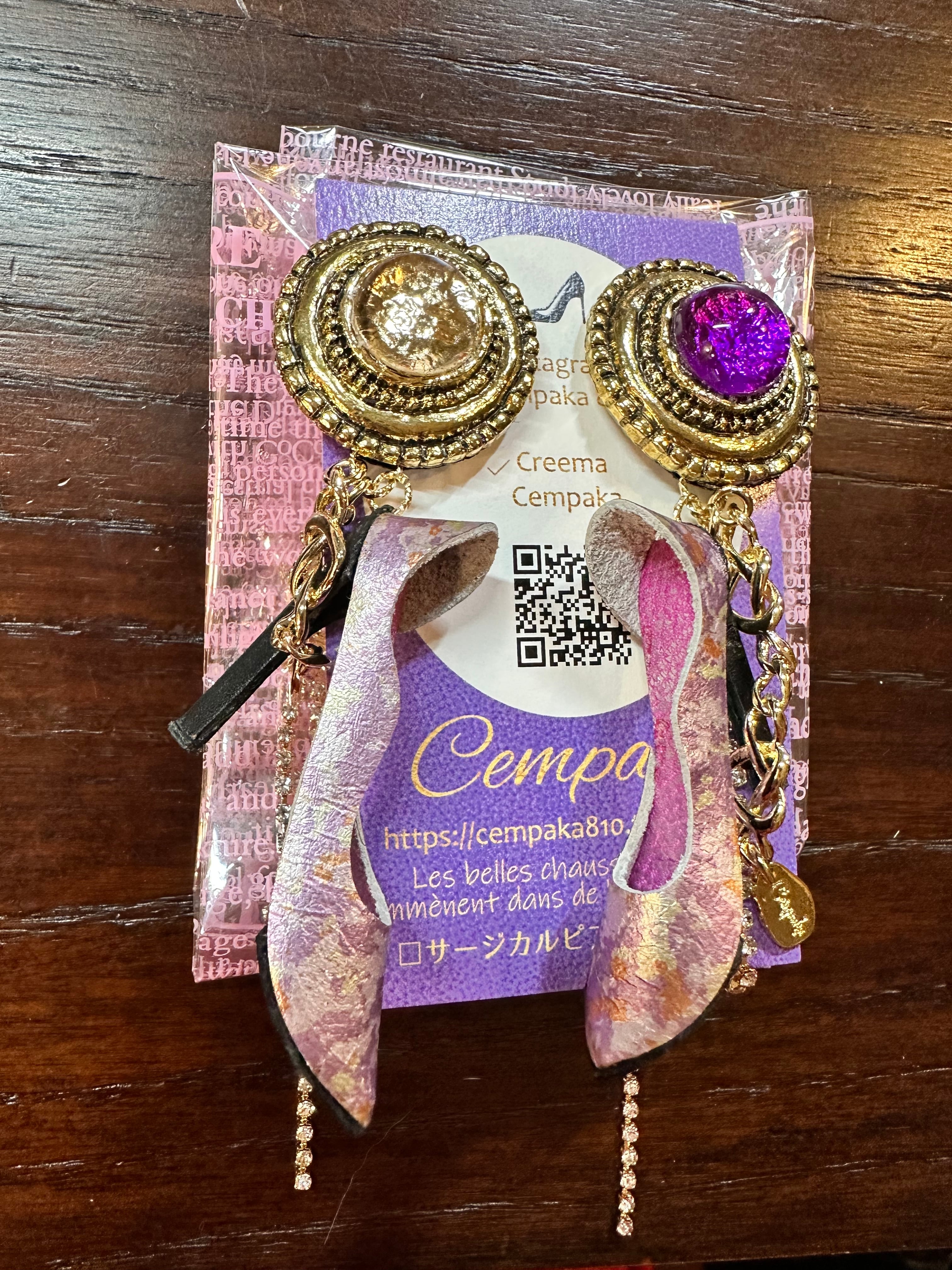 アシメのジュエルボタンに新作のハイヒールを合わせました。